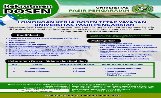 PENERIMAAN DOSEN TETAP YAYASAN UNIVERSITAS PASIR PENGARAIAN