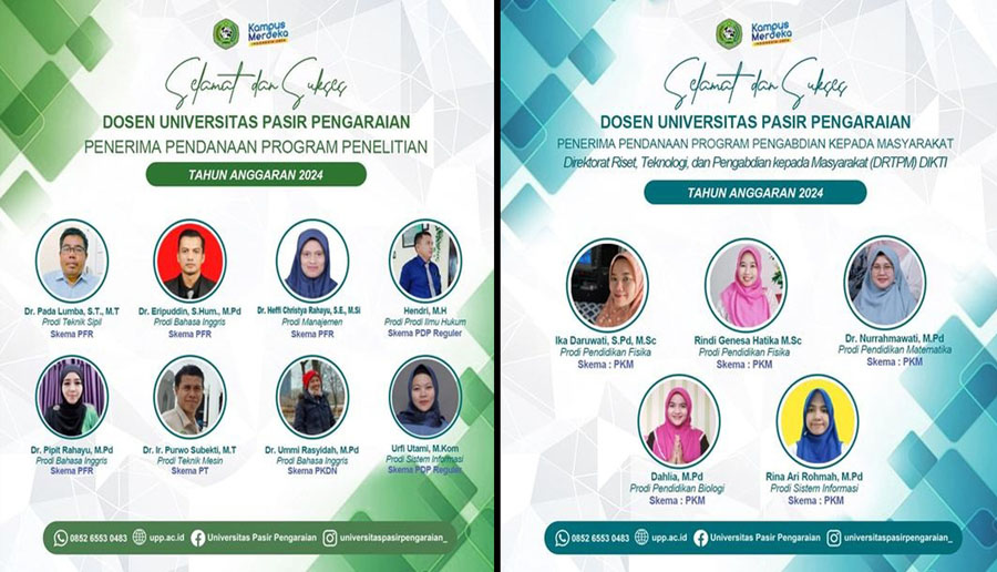 PASIRPENGARAIAN – Tiga belas dosen Universitas Pasir Pengaraian (UPP), Kabupaten Rokan Hulu (Rohul), Provinsi Riau, beberapa hari yang lalu berhasil lulus sebagai Penerima Pendanaan dari Dikti Tahun Anggaran 2024.