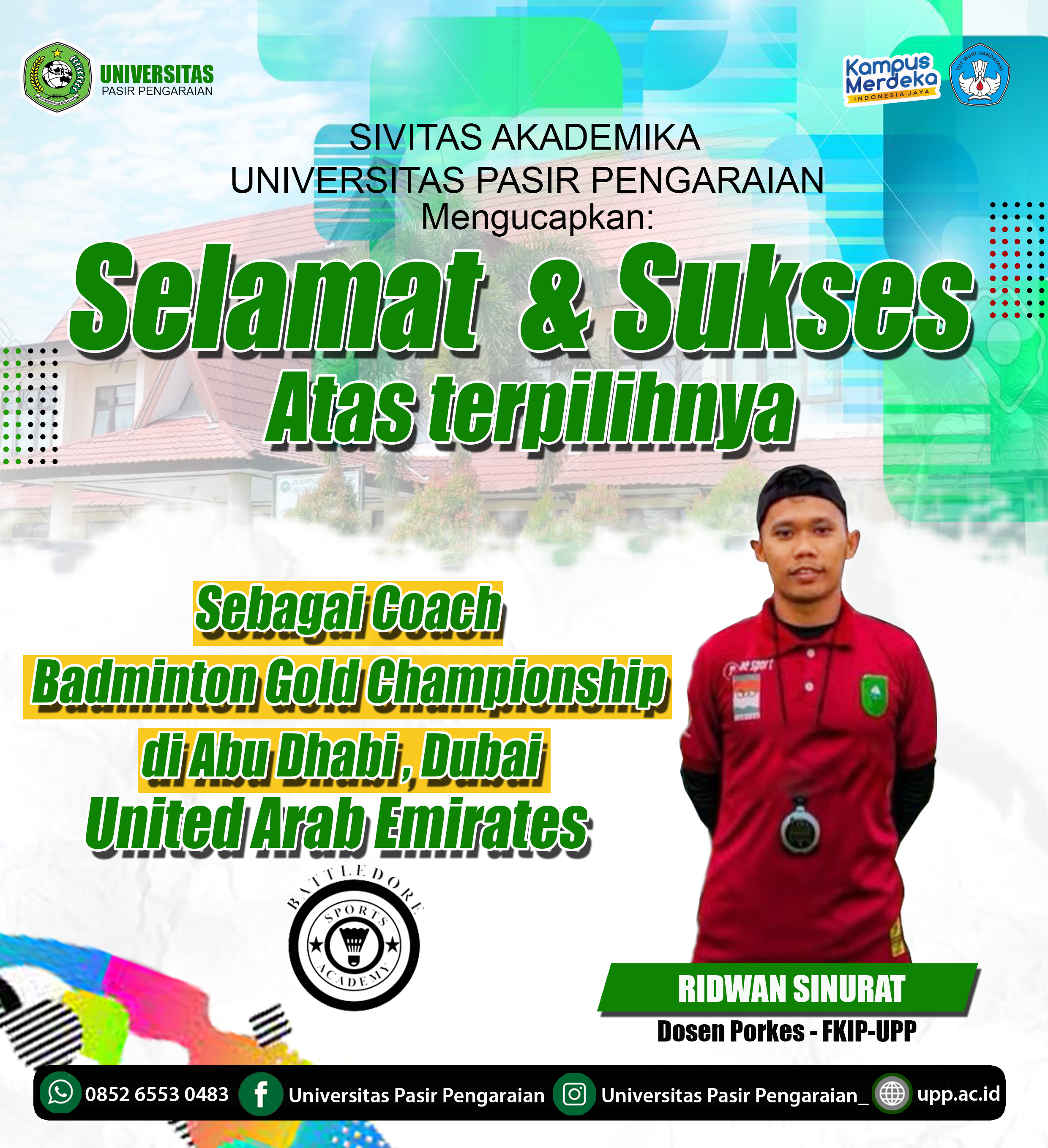Dimana salah seorang Dosen Porkes FKIP UPP yang terpilih sebagai Coach Badminton Championship di Abu Dhabi, Dubai United Arab Emirates itu bernama, Ridwan Sinurat. Setelah dinyatakan Ridwan Sinurat terpilih sebagai Coach Badminton Championship di Abu Dhabi, Dubai United Arab Emirates tersebut, banyak memberikan ucapan selamat sukses kepadanya, termasuk keluarga besar civitas akademika UPP.