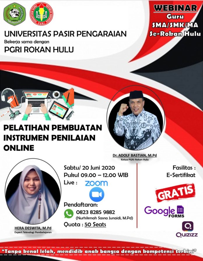 Tingkatkan Sistem Pembelajaran di New Normal, Guru SMA Se-Provinsi Riau Ikuti Webinar Oleh UPP dan PGRI Rohul.