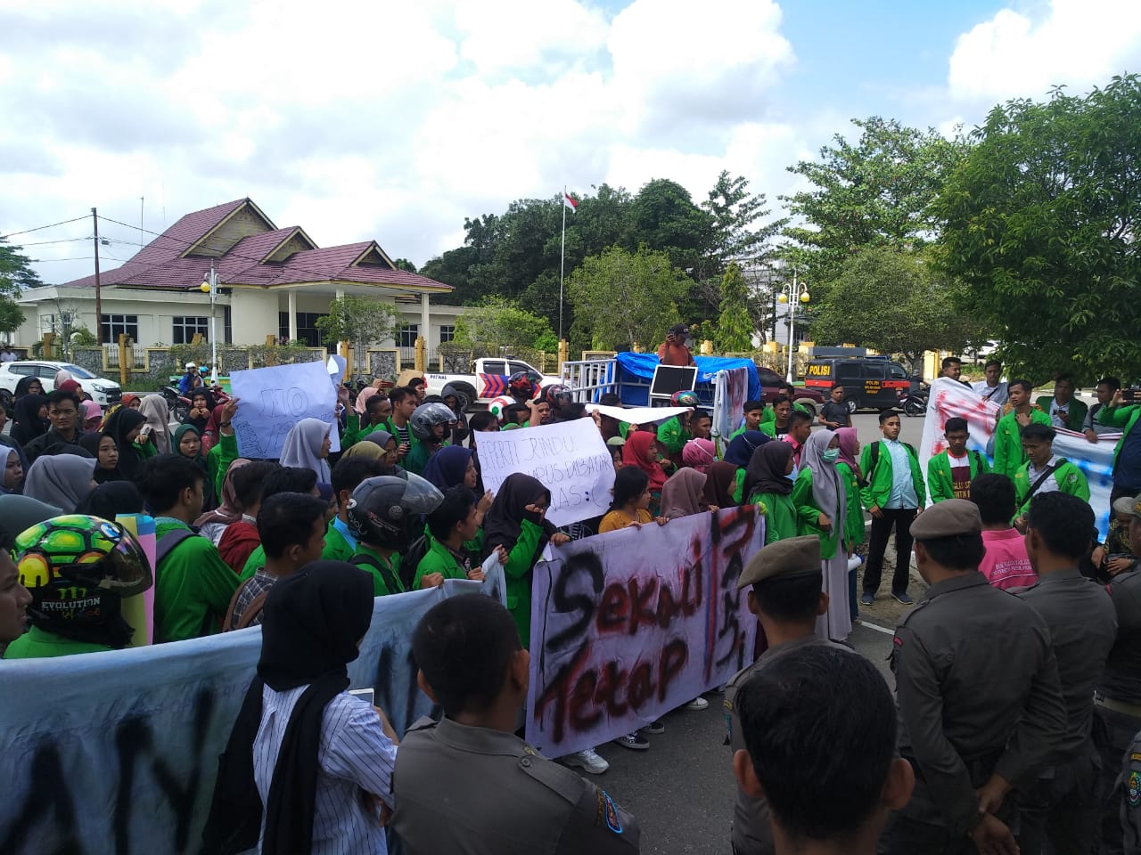 Tuntutan Tidak Diindahkan, Mahasiswa UPP Kembali Hijaukan Kantor Bupati Rohul.
